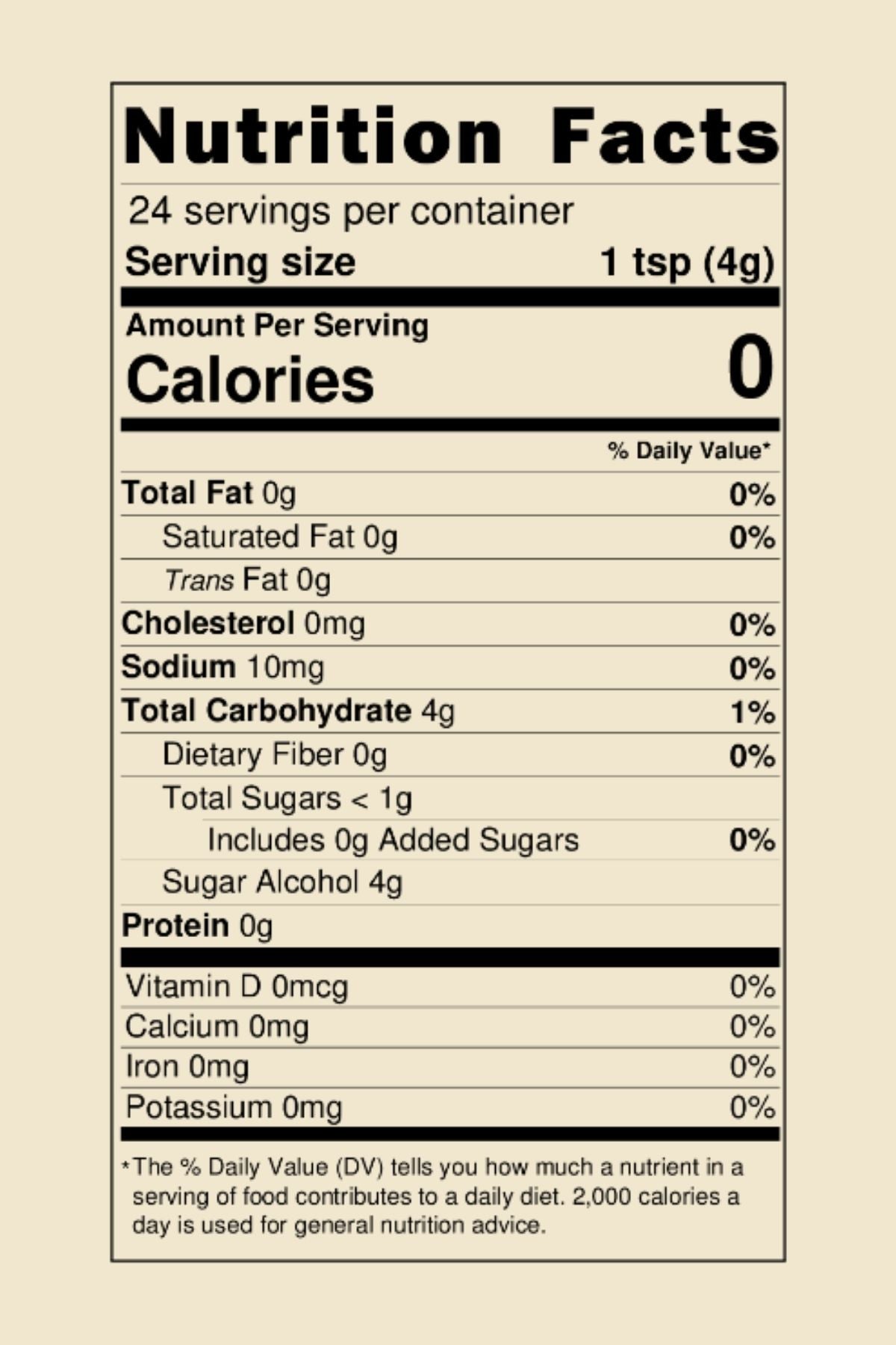Sugar Free: Stevia leaf extract with Erythritol, strawberry powder, vanilla powder, sea salt, strawberry flavor oil (sunflower oil, natural flavors)